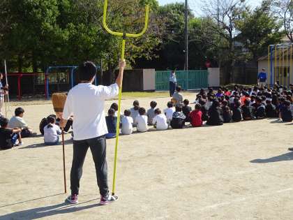 実際に不審者役を設定して、教職員の連携確認や不審者への対応、児童の避難の仕方を確認しました。