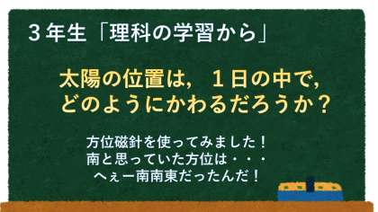 影の観察を終えて,影の位置がかわるのは,太陽の位置がかわるからだ!とわかりました!