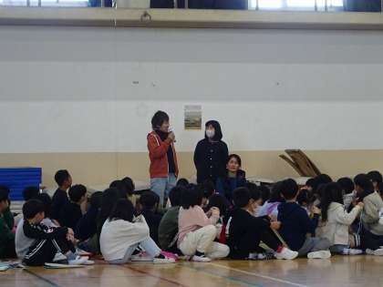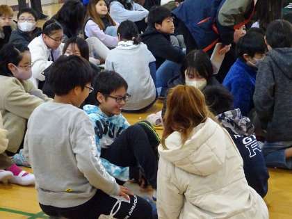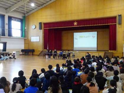 12月朝会に引き続いて、人権月間の取組として、「思いやり集会」を行いました。本部委員会の人たちが中心となって思いやり集会が始まりました。