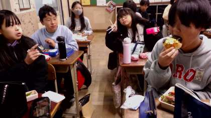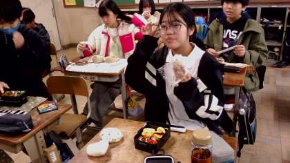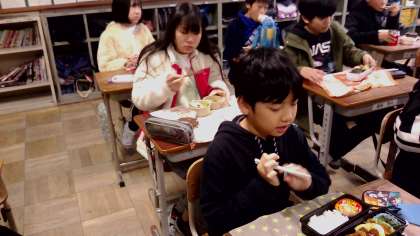 出発時間の関係のため、教室でお弁当を食べてから出発をしました。