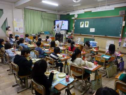 給食についての説明、給食室や給食時間の様子を参観していただき、給食を試食していただきました。
