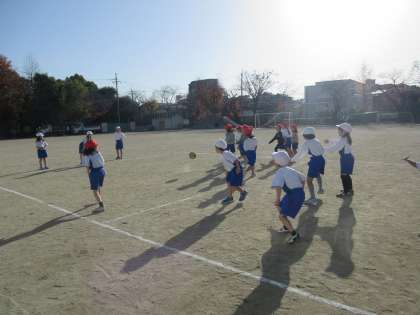初めてドッジボールをする子もいて、逃げるのに必死な様子でしたが、ルールを確認しながら楽しく取り組んでいました。