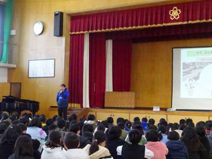 校長先生からは、「つながっている。応援してもらっている。と感じられることが、希望や勇気につながる」とお話がありました。被災地の事を忘れずに、自分ができることに全力で取り組んでほしいと思います。