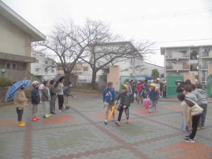 どんよりした天気を吹き飛ばす元気なあいさつを見せてくれました。