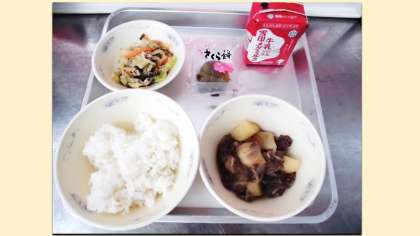 今日は春にちなんだ和菓子、「桜もち」が出ました。