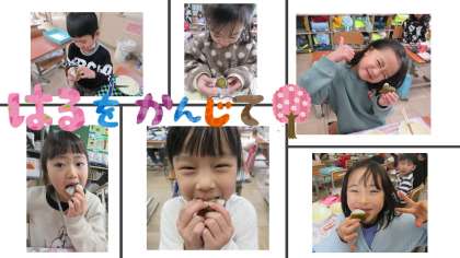 さくらの葉の匂いをかぎ、中にあんが入ったもちと、塩漬けしたさくらの葉の味を楽しみました。