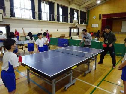 卓球・バスケットボール・サッカーの種目で、6年生と教職員で試合をしました。教職員も本気で手加減なしでしたが、それ以上に6年生も上手で、いい試合が多かったです。6年生と教職員が一緒に活動し、思い出に残る楽しい時間になったと思います。
