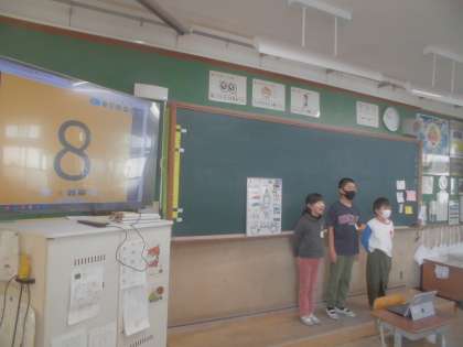 国語科「わたしたちの学校じまん」の学習の様子です。