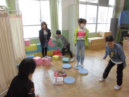 今日は、残念ながら雨。校庭では遊べませんでしたが、なかよし学級のみんなはプレイルームで楽しく遊んでいました。