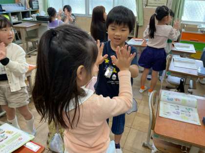 セブンステップスでは、隣の友達と手をたたいたり