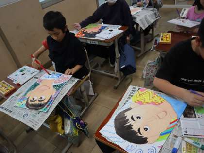 今回のテーマは、学年目標でもあるLOOKUP!している自画像。