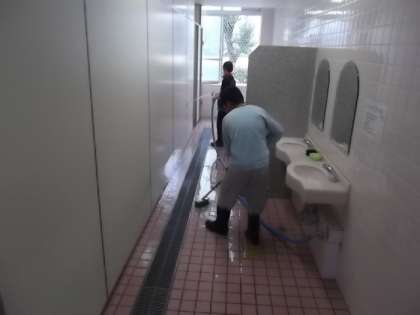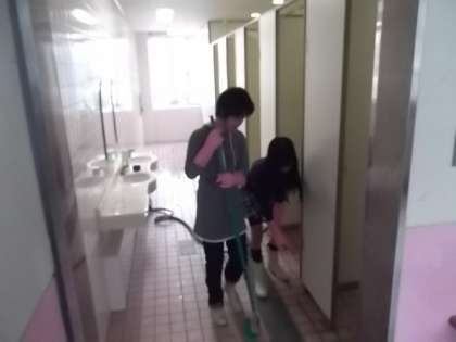 本校では,4年生以上の児童がトイレの掃除をがんばっています。今日もすごく頑張っていました。