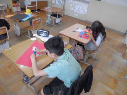 自分の好きな模様を切り、思い思いのこいのぼりをつくりました。