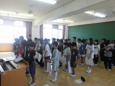 1年生に学校のことをわかってもらおうと一生懸命練習していました。