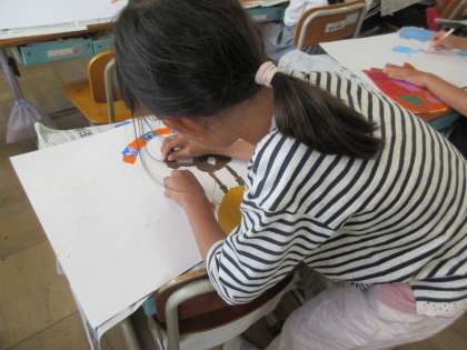 図工の学習では、「ふしぎなたまご」をテーマに絵を描いています。
