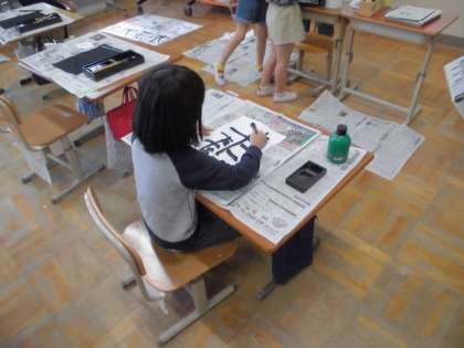 思い思いに文字を書き、筆で書く楽しさを味わっていました。