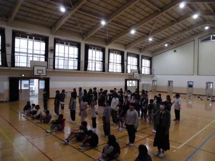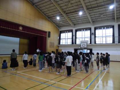 1年生を迎える会の練習をしました。6年生は学校クイズを披露します。