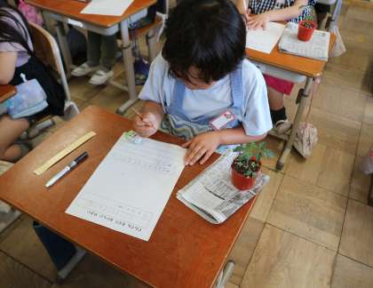 観察する前に、観察のポイントの、大きさや長さや形、においや数、触った感じなどを確認してから観察しました。