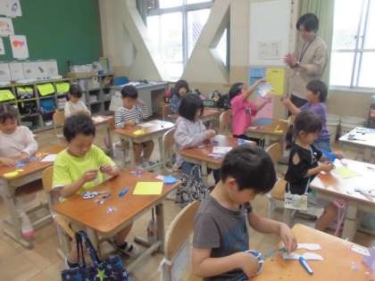 安全なはさみの使い方をみんなで確認し、その約束をきちんと守って楽しくいろいろな飾りを作っていました。
