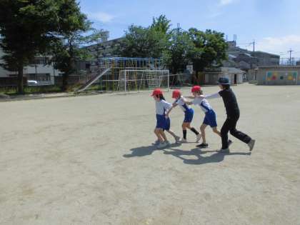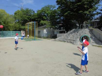 その場でボールをついたり、パスの連取をしたり、ボールを使って楽しく体を動かしました。