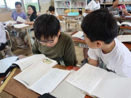 今回は友だちと交流。自分の考えと比べながら聞きました。