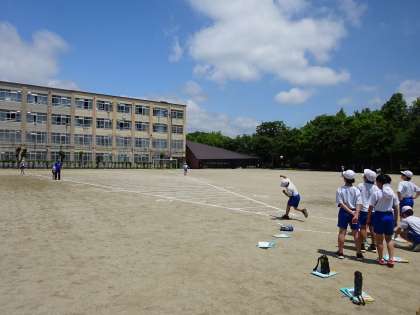 本日は1日目の体力テストで、運動場ではソフトボール投げをしました。