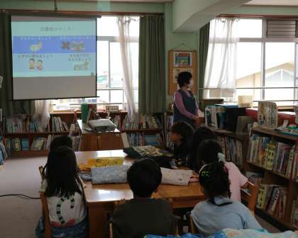 月曜日に、学校司書の先生から図書室の使い方などのオリエンテーションをしてもらいました。
