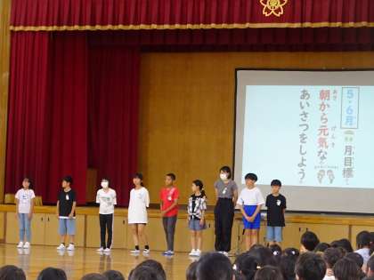 児童会目標の発表や各委員会の委員長紹介、児童会の月目標の発表などがありました。