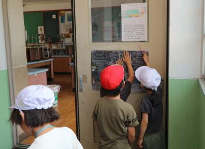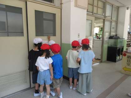 1年生を連れて学校探検に行きました。