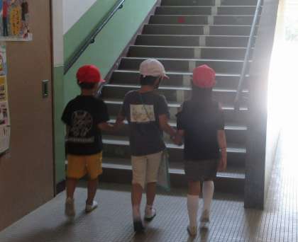 手を繋ぎながら連れていく様子は、頼もしいお兄さんお姉さんに見えました。