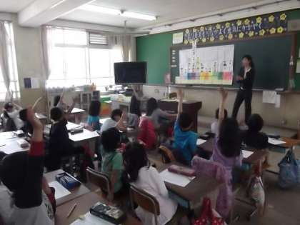 誕生日しらべの表を見て,ぱっと見てすぐにわかる方法を考えました。子どもたちはしっかりと話を聞き,よく考え,手をあげて発表しようとがんばっていました。