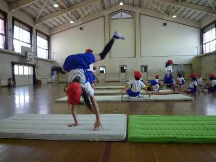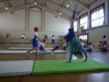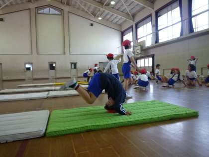 体育館では,マット運動。
