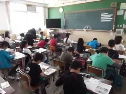 300°など大きな角度をどうして書こうかな?分度器は180°までしかないし・・・「そうか,わかったぞ」子どもたちは,いろいろな考え方を出し合いながら大きな角度を書いていました。