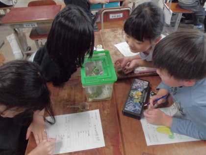 3年理科 モンシロチョウのよう虫の観察