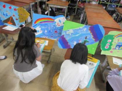 図工の学習で取り組んでいた「ふしぎなたまご」が完成しました。