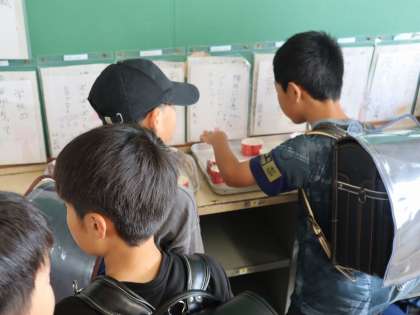 総合的な学習の時間では、農業体験をすべく、バケツ稲を育て始めました。