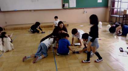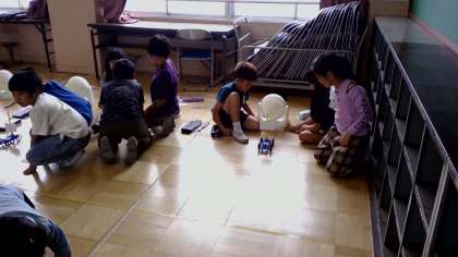 風の当てる大きさが少し変わるだけできょりが大きく変わることに驚いていました。