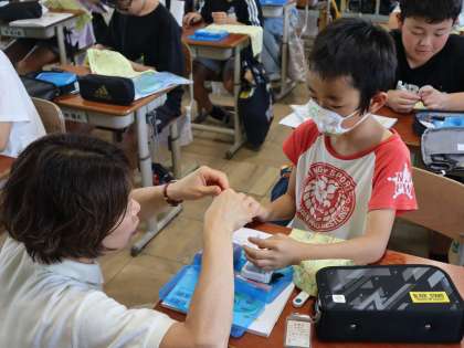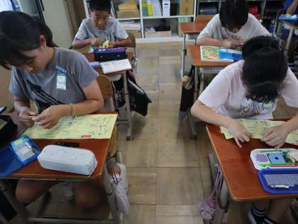 家庭科の学習で、玉結び・玉止めをしました。