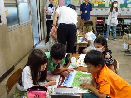 3年生では、京都市の様子について地図やタブレットを使って学習しました。気づいたことや考えたことをグループ内で交流して、考えを深めていました。