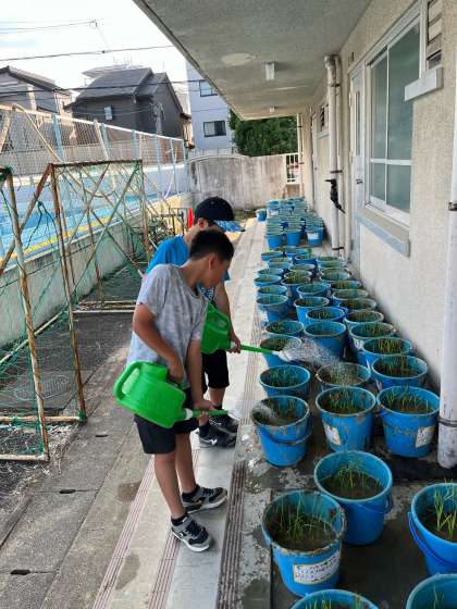 暑い日が続きますが、毎朝と下校時に水やりを頑張っています!