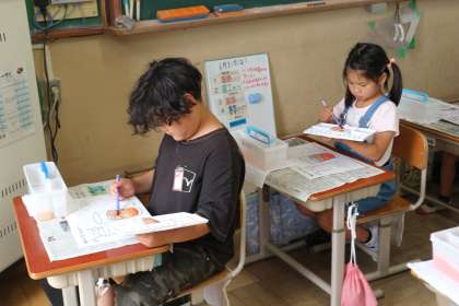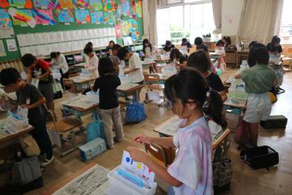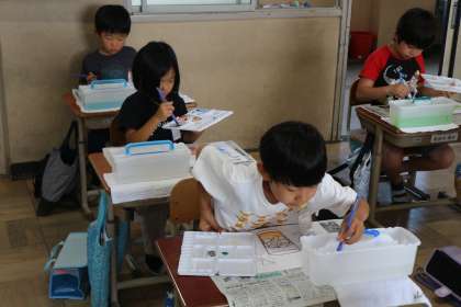 図画工作科の授業で、初めて絵の具セットを使いました。