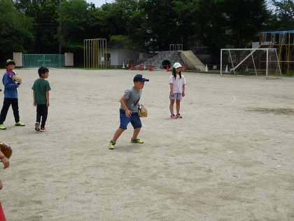 大谷選手からいただいたグローブを使って、ベースボールも行われていました。みんなで一つのボールを打ったり、投げたりしながら、仲よく盛り上がりながらできていました。