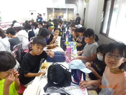 昼食は、おうちの方に作ってもらったお弁当です。みんな楽しく過ごしています
