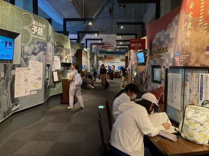 一生懸命メモを取りながら学習しています。防災については、一人一人の意識が大切ですね。そのためには、正しい知識を学び、それらをいかせるように学んで帰ってきてほしいです。