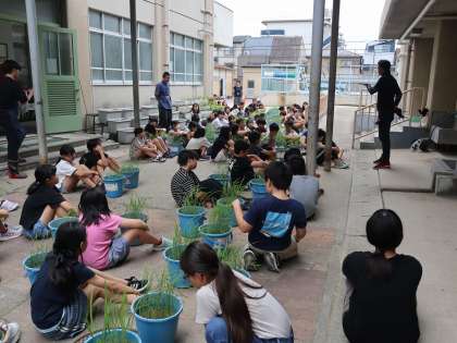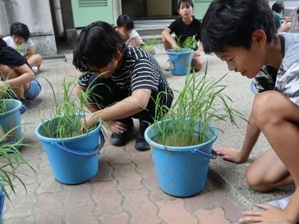 今回は育ってきた苗を、間引き、5本ほどまとめて再び植えつけました。