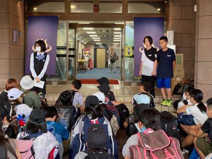 入館式を担当している子どもたちが代表であいさつをしてくれています。人気のお宿のようで、一般のお客さんもたくさん宿泊されているようです。周囲の事も考えながら楽しんでくれるといいですね。