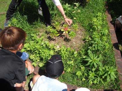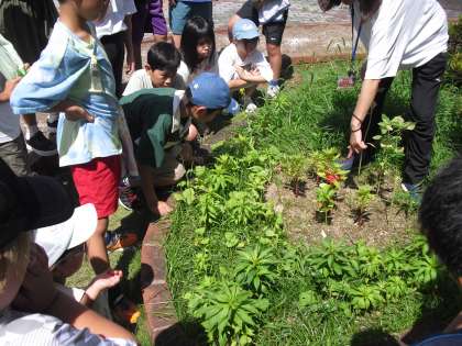 理科の学習では、ずっと見守ってきたホウセンカがいよいよピンク色のきれいな花をさかせました。観察してみるとひまわりとはつぼみのつく位置もちがい、子どもたちも驚いていました。くきの根本の色や葉の形を見て、すぐに「ホウセンカだ!」と見分けている姿を見て、これまでの学習をしっかり覚えているなと感じました。