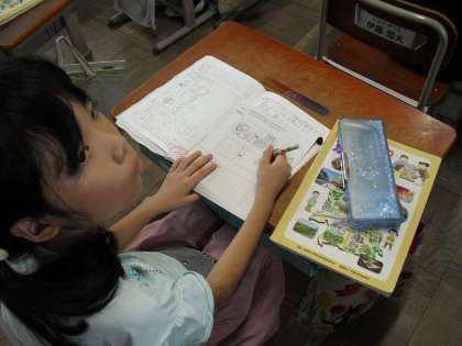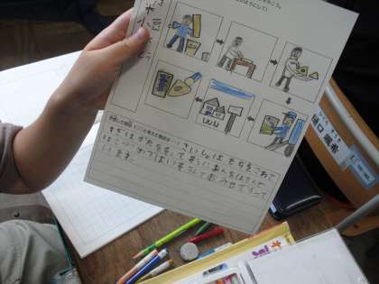 9月には社会見学があります。行き先の一つは八つ橋工場です。そのため、見学に行く前に八つ橋のことをもっと知ろうと学習を進めています。学習の中で、八つ橋は1時間で1万個も作られていることも知り、どうやって作っているのか、予想を6コマ漫画にまとめました。見学の時に予想と比べてみましょう。