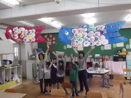 今日は,みんなで「こいのぼり」をつくりました。とても立派なこいのぼりが,なかよし学級の教室を泳いでいます。