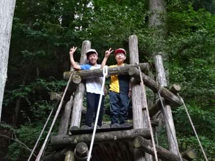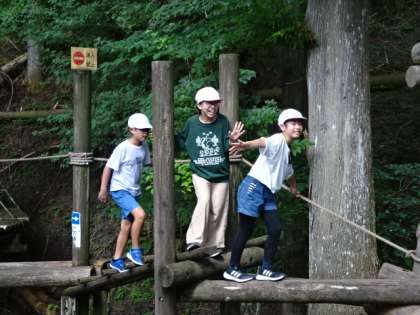 初めのうちは、「こんなの無理や」「怖すぎる」「揺れたらどうしよう」などの声も聞こえましたが、友達から「一緒に登ろう」「あそこをつかむといいよ」「できるって」などの励ましの声が聞こえてきたのも良かったです。